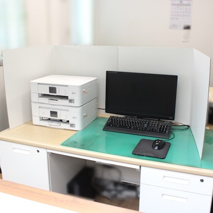 清潔感のある表面白色のパーテーションで、設置した際の圧迫感が少なく明るく開放的な印象になります。